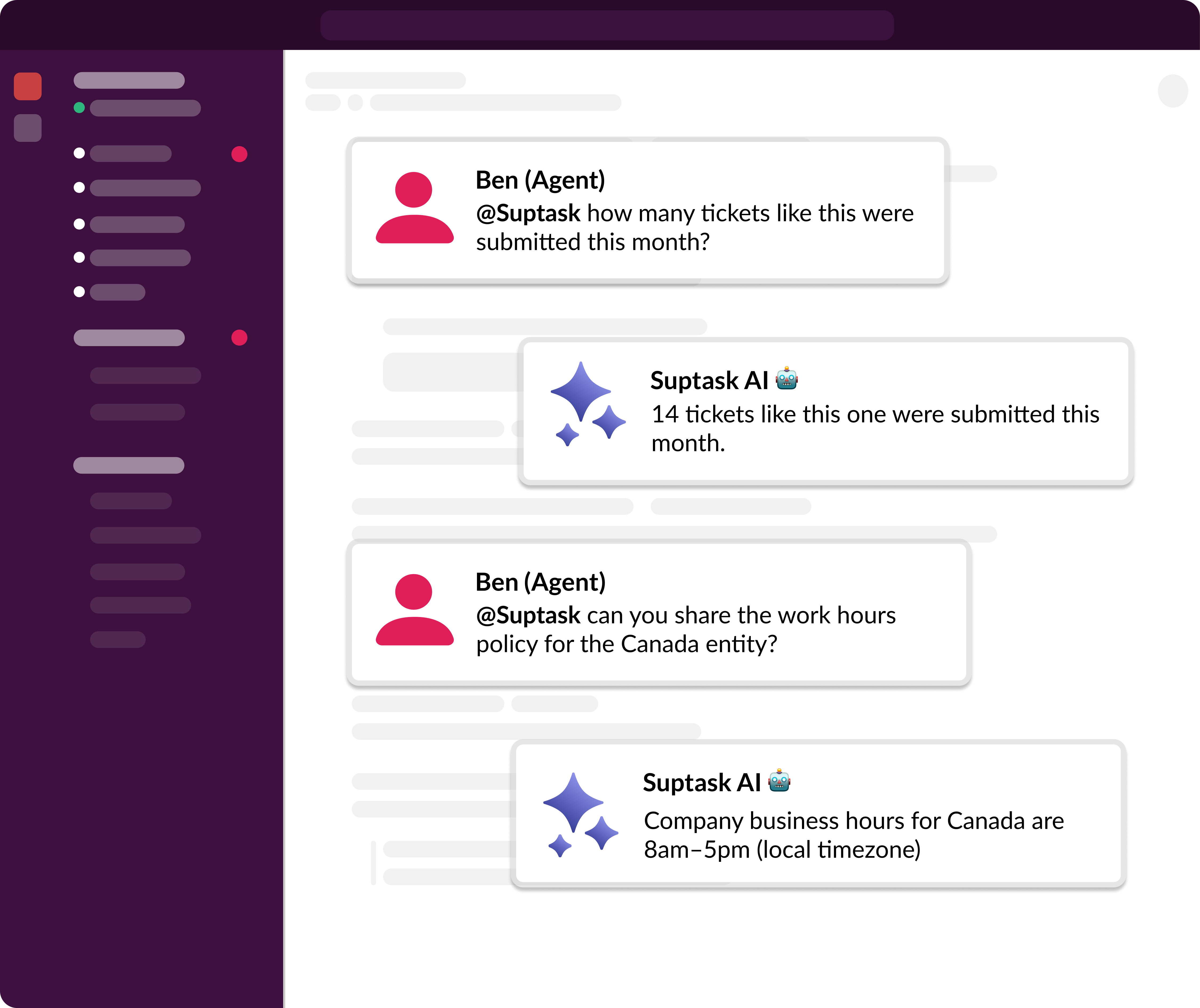 We have proven examples across many organizations where teams such as IT (ITSM), Product, Engineering, Finance / Billing, Revenue Operations, Sales Operations, and HR are using Suptask to improve their ticketing experience on Slack.
