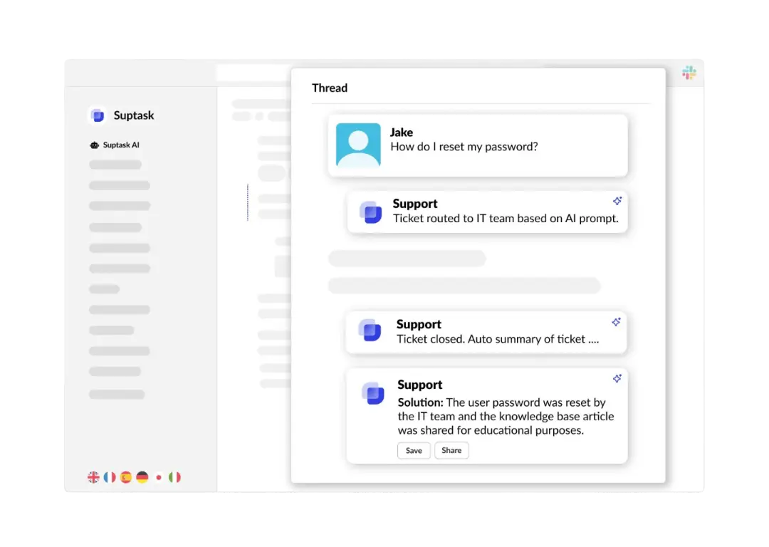 At the heart of customer service, speed and precision are essential. Suptask leverages AI within Slack to revolutionize ticketing systems, transforming how support operations are conducted. With Suptask, experience a seamless bridge between automated ticketing system and Slack's environment, creating a tailored, efficient support ecosystem.