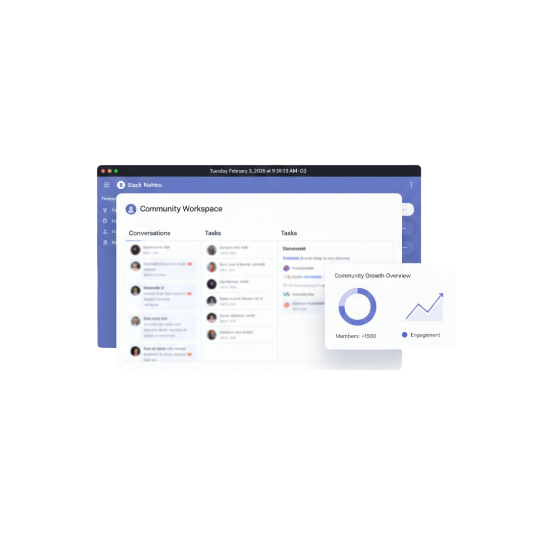 Suptask é o melhor software de gestão de comunidades que funciona diretamente no Slack, reunindo líderes e colaboradores em um só lugar seguro. Na nossa plataforma, você pode organizar eventos, moderar discussões, enviar tarefas para community managers e integrantes da equipe, mantendo o engajamento sempre em alta.
