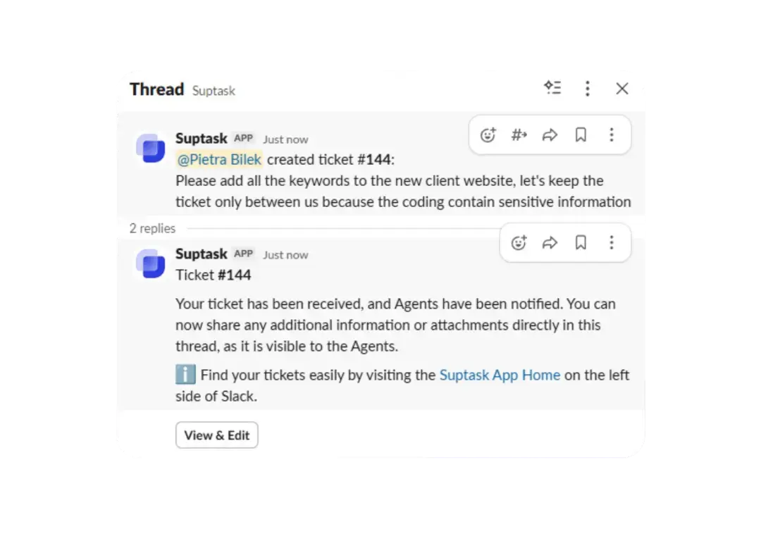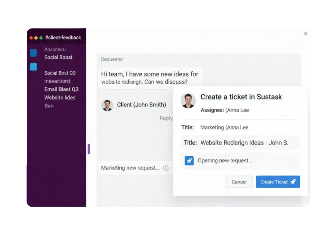 No mundo digital em constante transformação, as equipes de marketing precisam de ferramentas que aumentem a eficiência, estimulem a colaboração com o time de TI e ofereçam dados acionáveis. O Suptask transforma seu ambiente no Slack em um centro completo de gerenciamento de tickets, feito sob medida para as demandas dinâmicas do marketing.