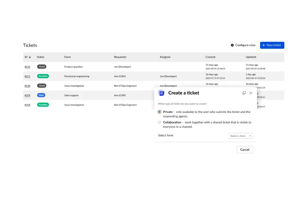 Aumente a produtividade e a satisfação dos clientes triando solicitações diretamente nos canais do Slack — uma nova forma de lidar com atendimentos e demandas internas. Trie tickets e descubra um jeito mais eficiente de lidar, classificar e priorizar as necessidades dos clientes dentro do seu ambiente familiar no Slack.